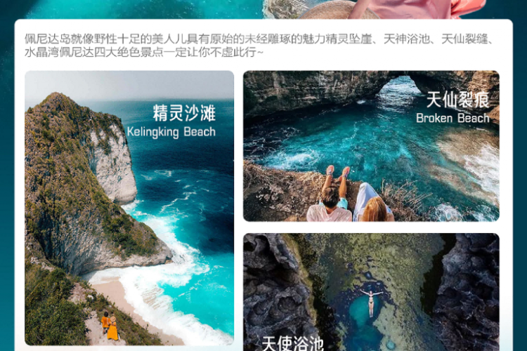 南湾水上娱乐中心位于巴厘岛的东南部,绵延长达七公里的海岸线,日光映照在湛蓝的海面上,金黄的沙滩上散布着被海水冲上岸的贝壳,漫步沙滩边聊天边拾贝壳,这是令人难忘的海岸回忆;亦可在沙滩椅上享受南国阳光的洗礼,换得人人向往的古铜色肌肤;或静静躺卧在发呆亭,遥望蔚蓝海洋,迎向徐徐海风,享受悠闲的午后时光。另外您也可自费体验一下具巴厘岛的各种水上项目活动,如拖曳伞、水上摩托车、香蕉船、飞鱼、海底漫步等各种水上娱乐活动,感受刺激的同时,让你在激动的心情中放松自己的身体。