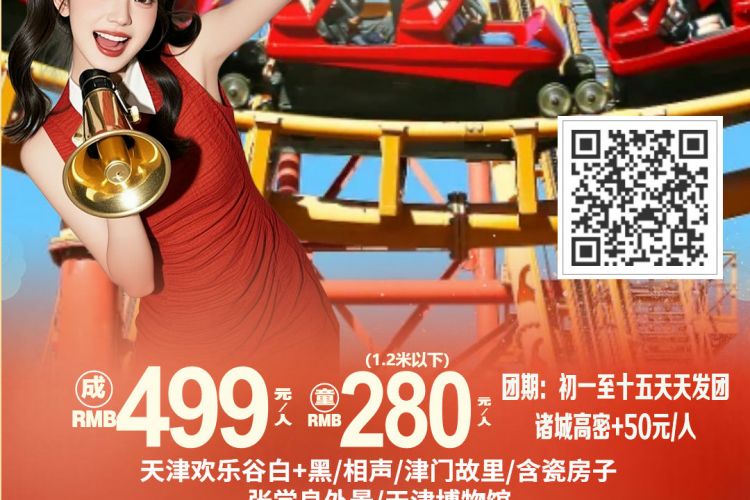 早乘车赴渤海明珠----天津,前往天津欢乐谷。愉快的一天开始了。畅玩欢乐谷:白+黑